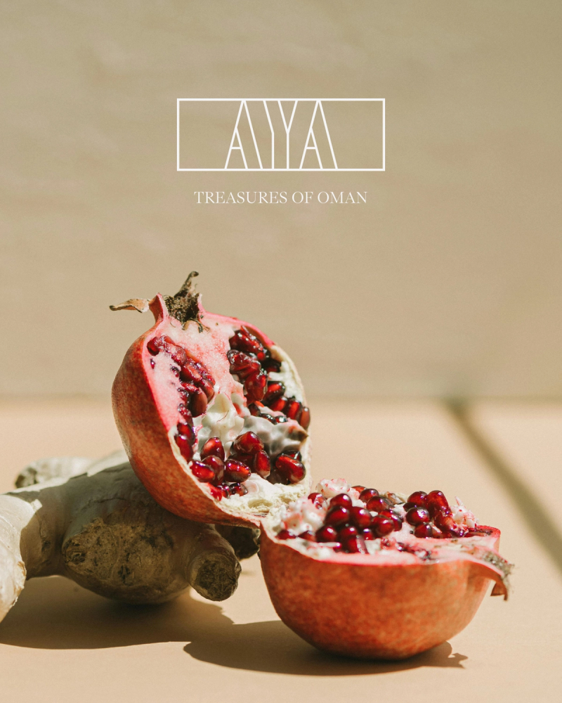 In the second half of 2024, we collaborated with Zainab Al-Mamari to develop the visual identity for her brand, AYA. With a background as a diplomat for Foreign Affairs in Oman, Zainab now lives in Germany and continues her role as a mediator, conveying the richness and diversity of Omani culture through AYA. Also a dedicated space in Ingolstadt is planned to offer an experience of Omani treasures. The logo reflects columns, tiles, and space for the Omani Experience, while the star element—derived from the „A“ in the wordmark—symbolizes guidance, light, and heritage. The color palette blends earthy tones, deep pomegranate red, and lavender as a contrasting hue.