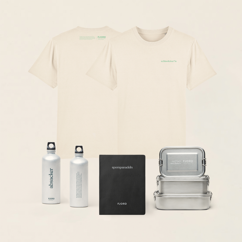 To kick off, we sourced merch goodies that are in line with Fjord’s values and quality standards, printed with Viennese idioms like Absacker, Spompanadeln, Schlawi(e)ner*in and ned fisch, ned fleisch.